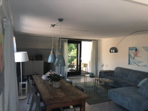 - Woongedeelte: Hal, 1 slaapkamer, luxe moderne badkamer met douche, separaat toilet, open keuken met inbouwapparatuur (o.a. afwasmachine, ijskast en combi-magnetron). Ruime woonkamer met toegang tot de tweede slaapkamer en met toegang tot het balkon.