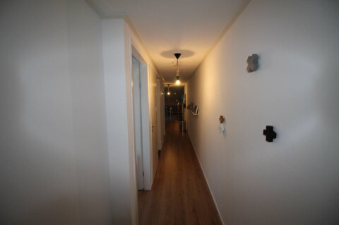 Hal, 2 slaapkamers, luxe afgewerkte badkamer met douche, separaat toilet, open keuken met inbouwapparatuur, o.a. afwasmachine, ijskast en combi magnetron. Ruime woonkamer met uitzicht op het Kolkje en deuren naar loggia.
