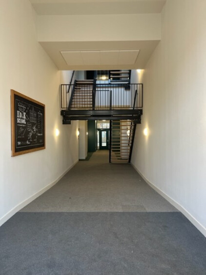 Zodra je het appartement binnen stapt ervaar je rust, ruimte en licht. Door het hoge plafond was het mogelijk om een entresol te maken in het voormalige klaslokaal. Op de entresol kun je slapen en onder de entresol bevinden zich de keuken, badkamer, toilet en een kleine techniekberging.