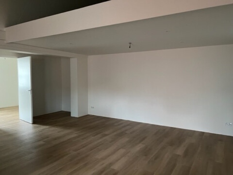 De ruime woonkamer is voorzien van twee grote tuindeuren die naar de eigen buitenruimte leiden, te realiseren tot eigen tuin en/of parkeermogelijkheid.