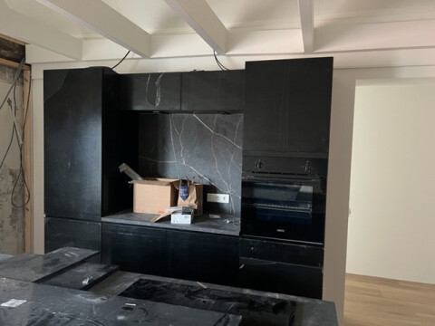 Vanuit de woonkamer is de nieuwe moderne open keuken met kookeiland te bereiken, die is voorzien van vaatwasser, inductie kookplaat, afzuigkap en combi-magnetron. Tevens beschikt de woonkamer over een grote vide die eventueel te gebruiken is als extra slaapruimte voor bijvoorbeeld logés.